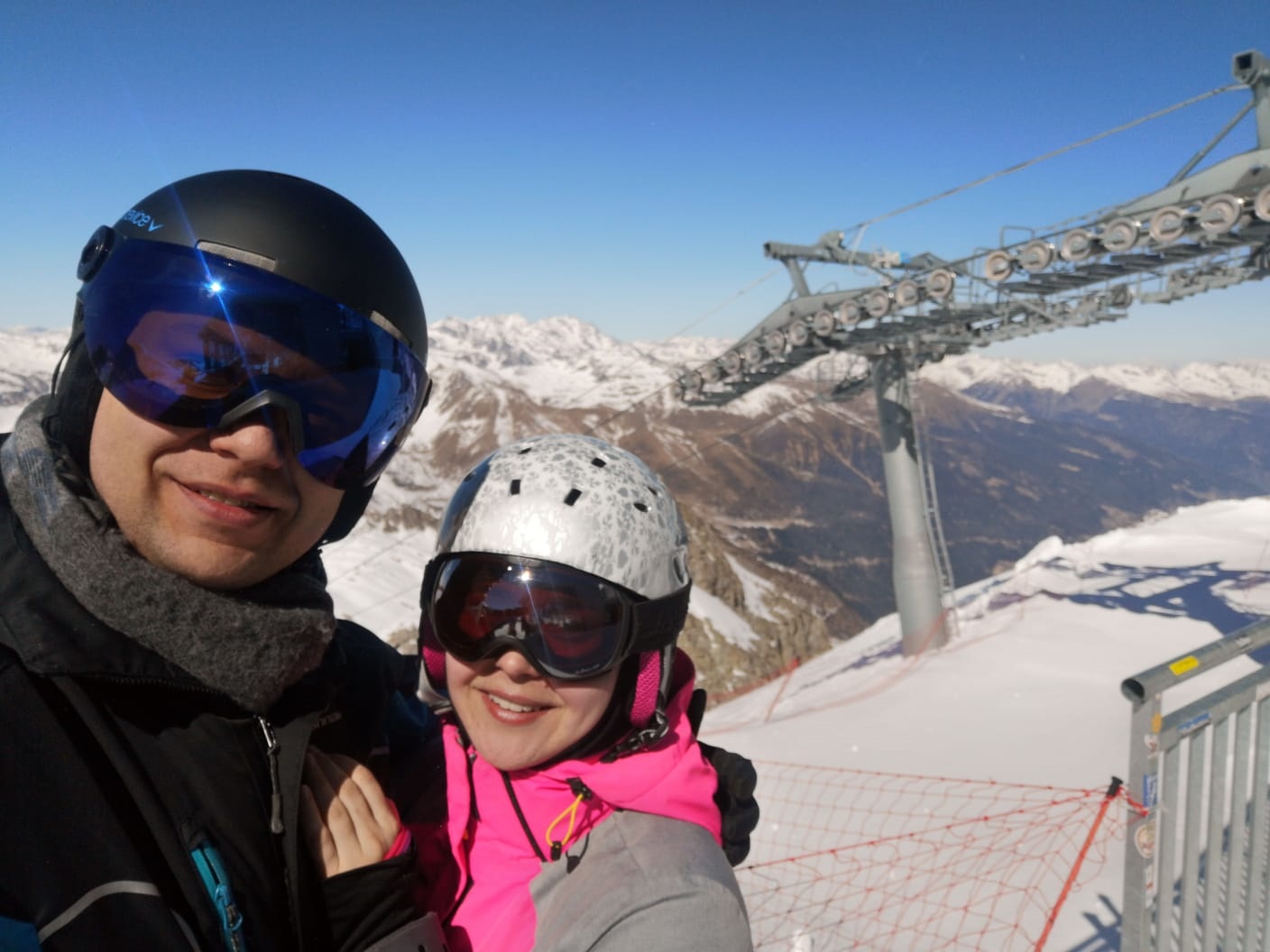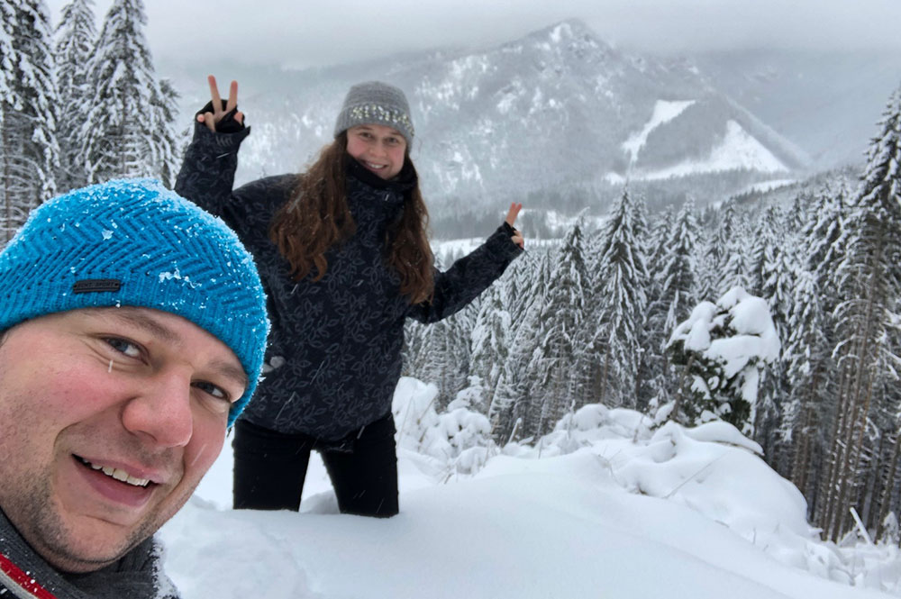 Odměna však nejvíc sladká. Třetí den už na svahu. Tohle máme oba rádi, jsme šťastní za tu výpravu.