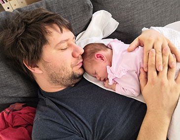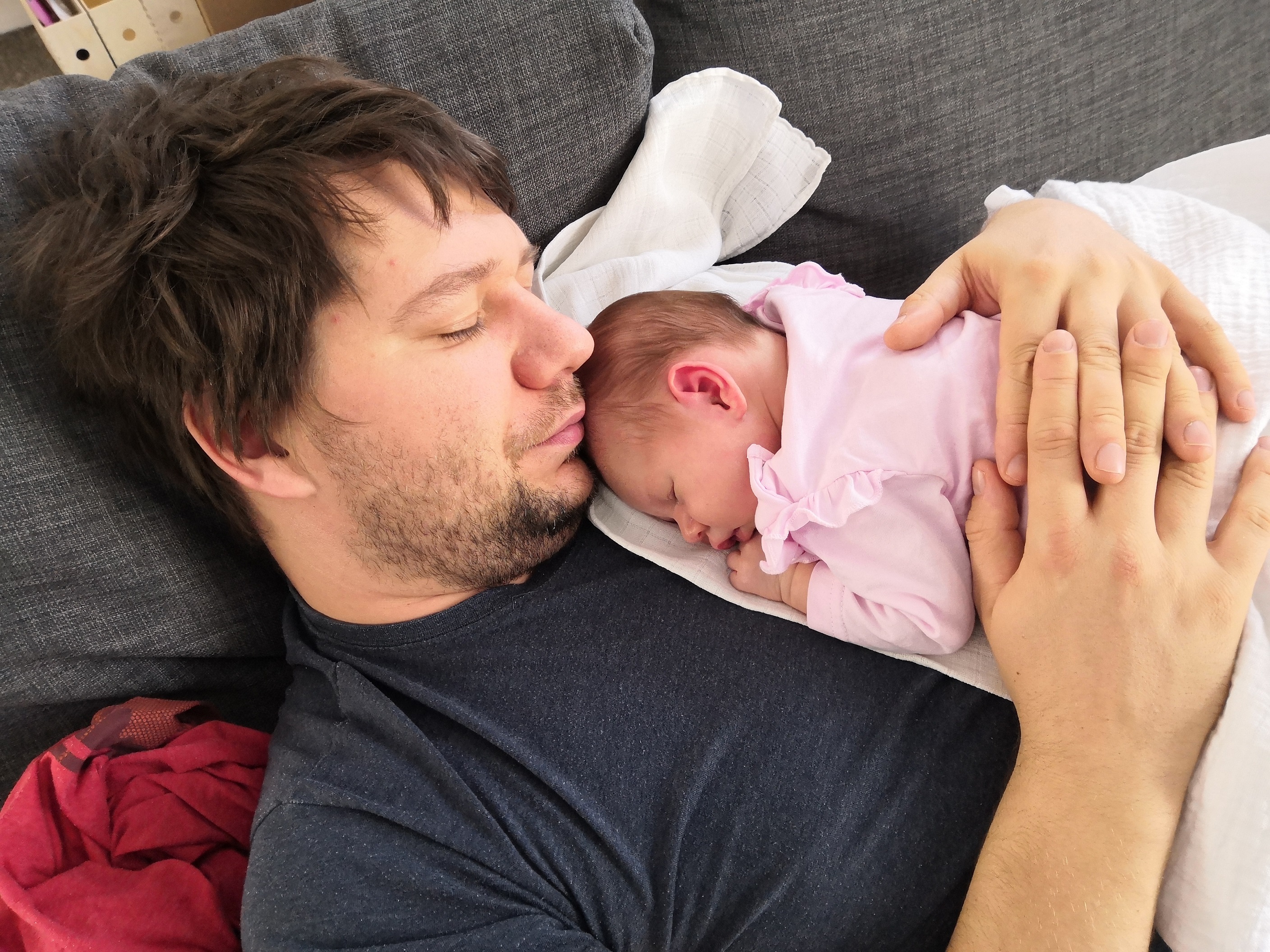 jaro 2020V březnu v Česku začal Covid, přišla pro nás velká změna. Káťa stihla dítě povít, narodila se nám Karolína.