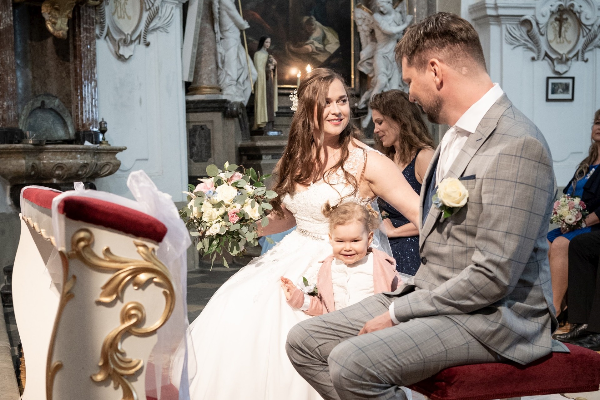 Na lásku už jsme tak tři, pyšný táta splněný má sen. Dnes sejdou se tu její kmotři, pro všechny to bude velký den.